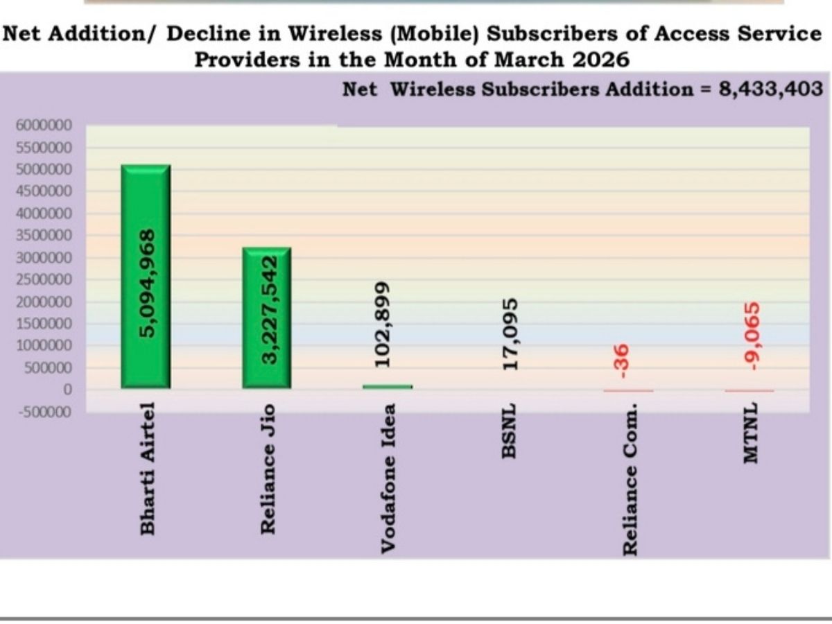 Bharti Airtel added the highest number of subscribers in March 2026, leading the market for the third consecutive month.