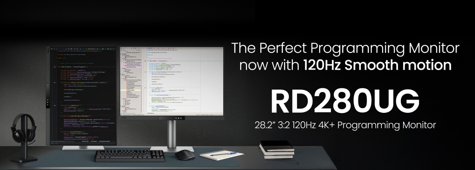 Built on the understanding that better visual environments lead to better thinking, the 28-inch 3:2, 120Hz, 4K+ RD280UG is engineered to reduce visual fatigue, enhance readability, and help developers maintain deep focus across long coding sessions.