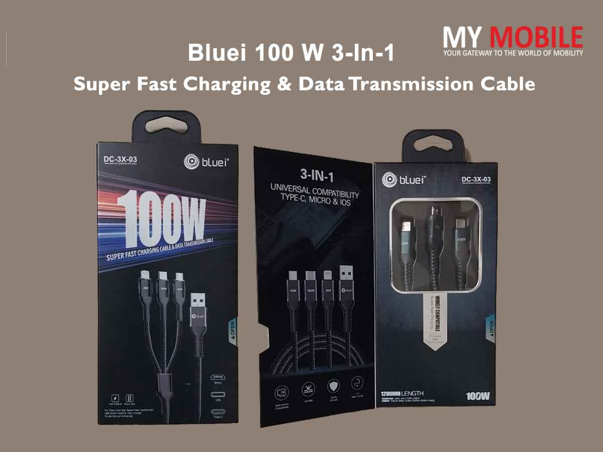 - The Bluei 100W 3-In-1 Super Fast Charging & Data Transmission Cable is a versatile cable compatible with Micro, iOS, and Type-C devices.