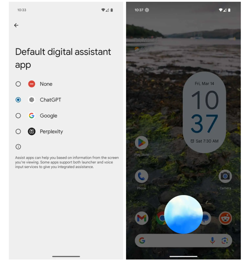 Android users would soon be able tp choose ChatGPT as their default AI assistant. (Image credit – 9to5Google)