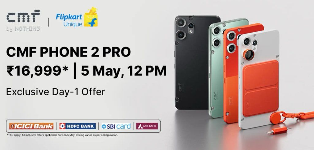 As a special introductory offer on 5th May, CMF Phone 2 Pro will be available for as low as INR 16,999 for the 8+128 GB variant and INR 18,999 for the 8+256 GB variant (including all offers).