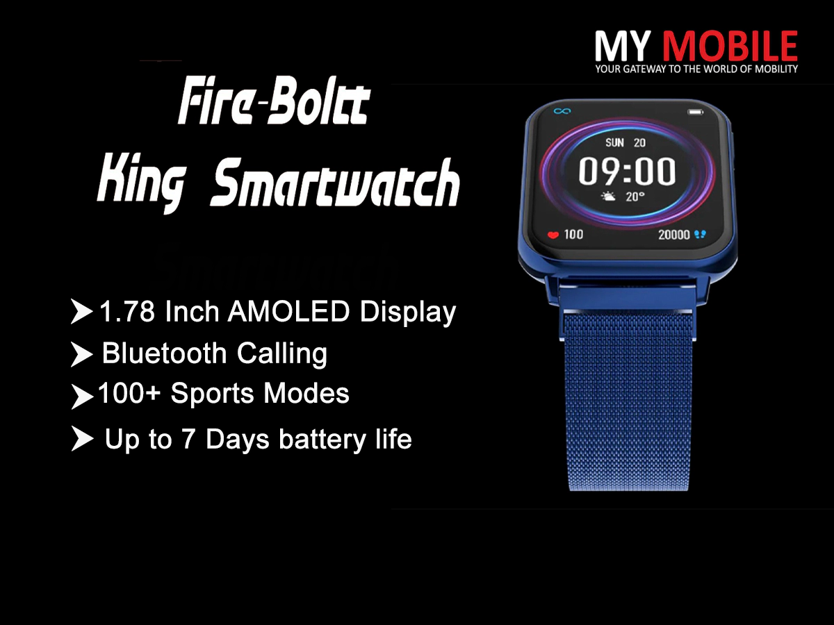 * Fire Boltt King Smartwatch features 1.78 inches AMOLED display, 550 Nits Brightness, 100 Sports Modes, Always On Display feature.