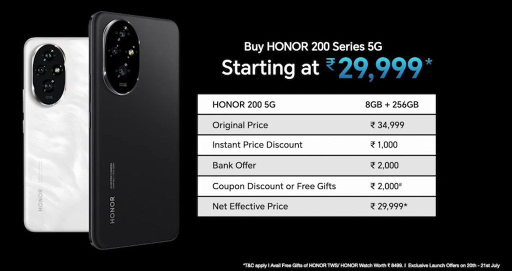 • HONOR 200 5G (8GB +256GB) variant can be availed starting Rs. 29,999, on 20th and 21st July.