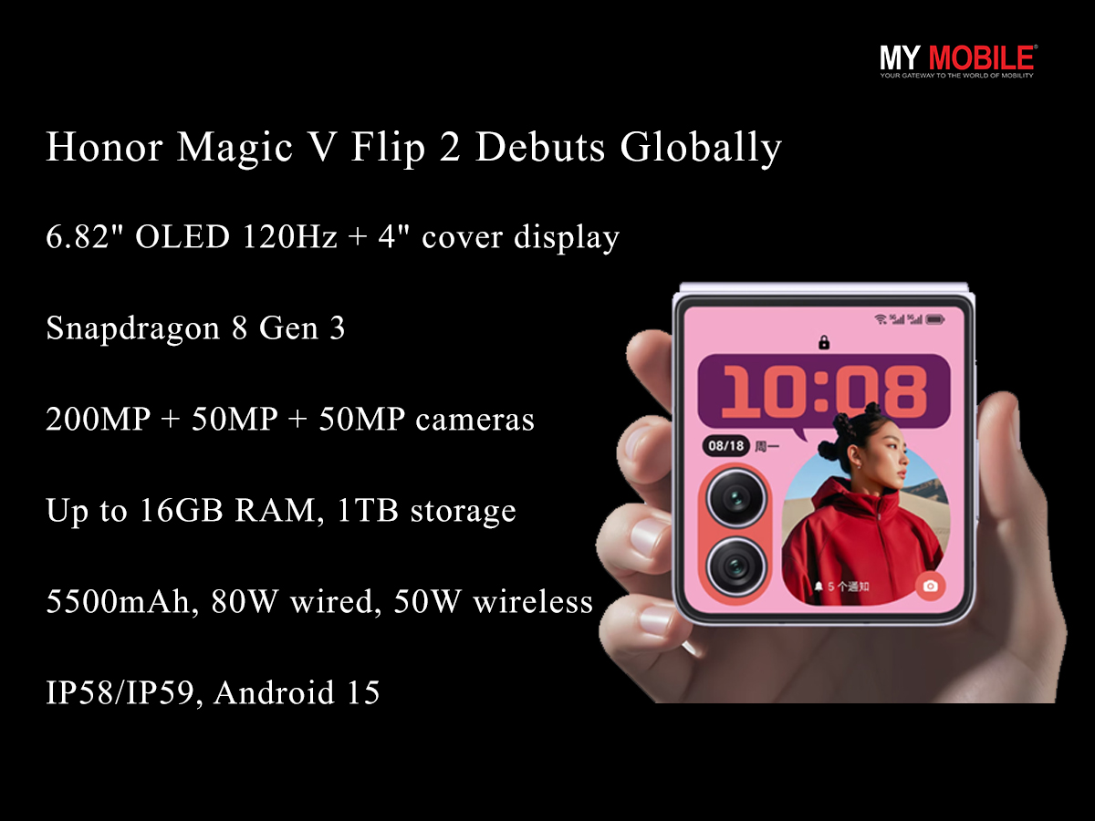 The Magic V Flip 2 sports a 6.82-inch Full-HD+ (1,232×2,868 pixels) LTPO OLED foldable inner display with up to 120Hz refresh rate, 4,320Hz ultra-high frequency PWM dimming, and an impressive 5,000 nits peak brightness. On the outside, it features a 4-inch LTPO OLED cover screen with a 1,200×1,092 pixels resolution, 120Hz refresh rate, 3,840Hz PWM dimming, and up to 3,600 nits peak brightness.