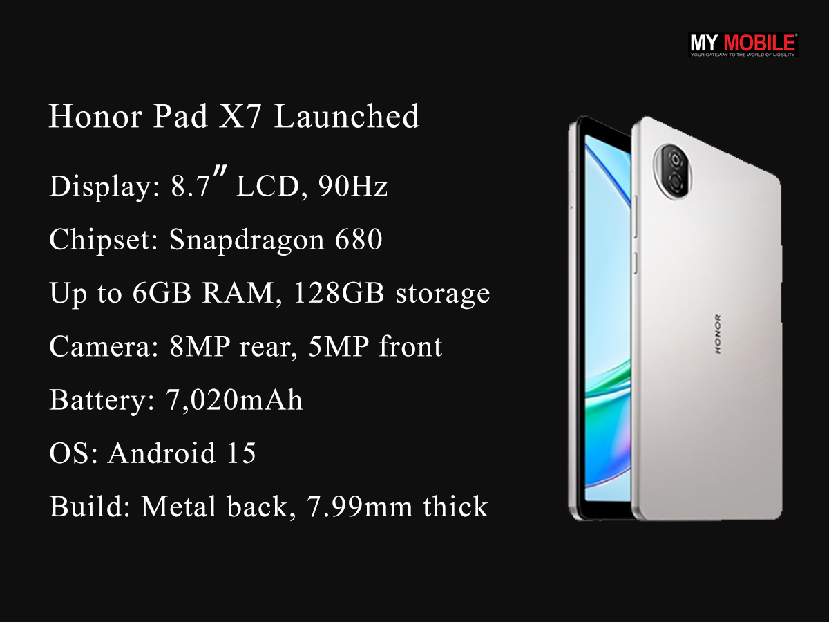 - Honor introduces the Pad X7, an 8.7″ tablet powered by Snapdragon 680 with up to 6GB RAM, Android 15, and a 7,020mAh battery.