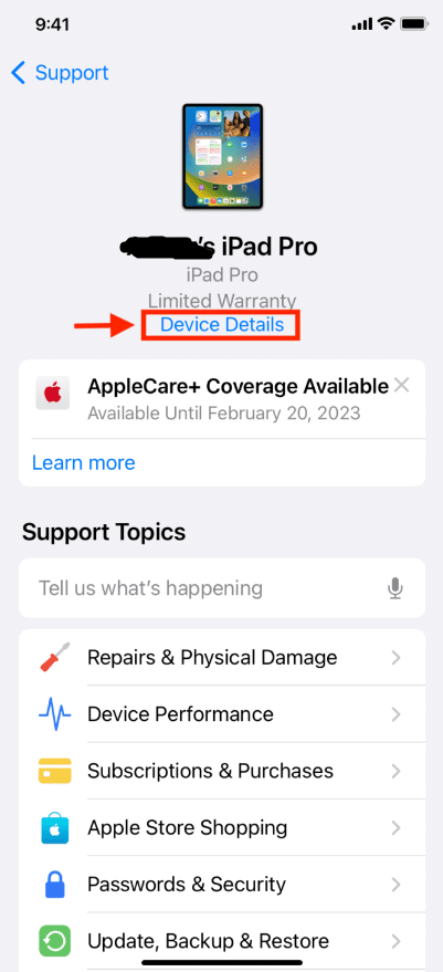 iPhone and iPad users can use the official Support app to check coverage and warranty status.