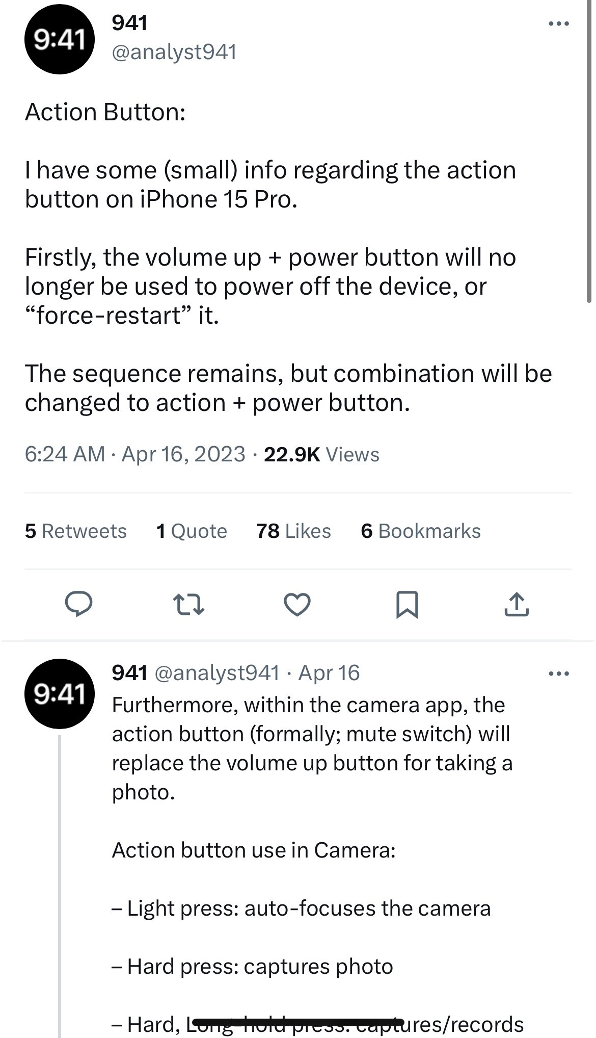 Ans) However, @analyst941 seems to think Apple is going ahead with the iPhone 15 Pro Action button, and has described how it can be used to control the camera.