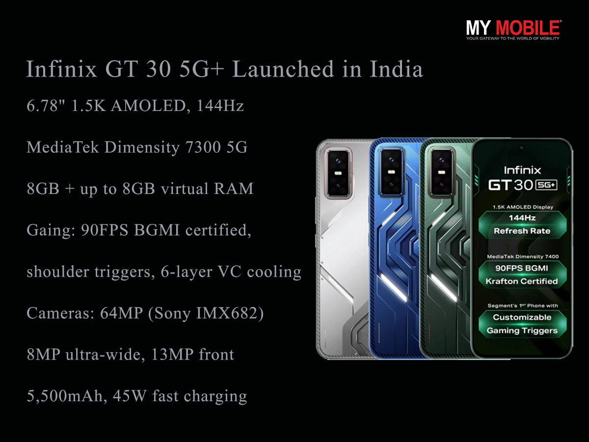 - Infinix GT 30 5G+ launched at the starting price of ₹19,499.