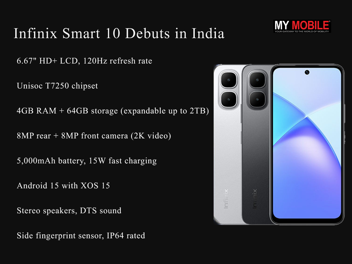 - Infinix Smart 10 launched in India at the affordable price of ₹6,799.