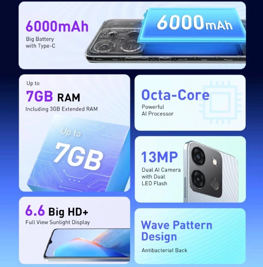 * Infinix Smart 7 features up to 7GB RAM.