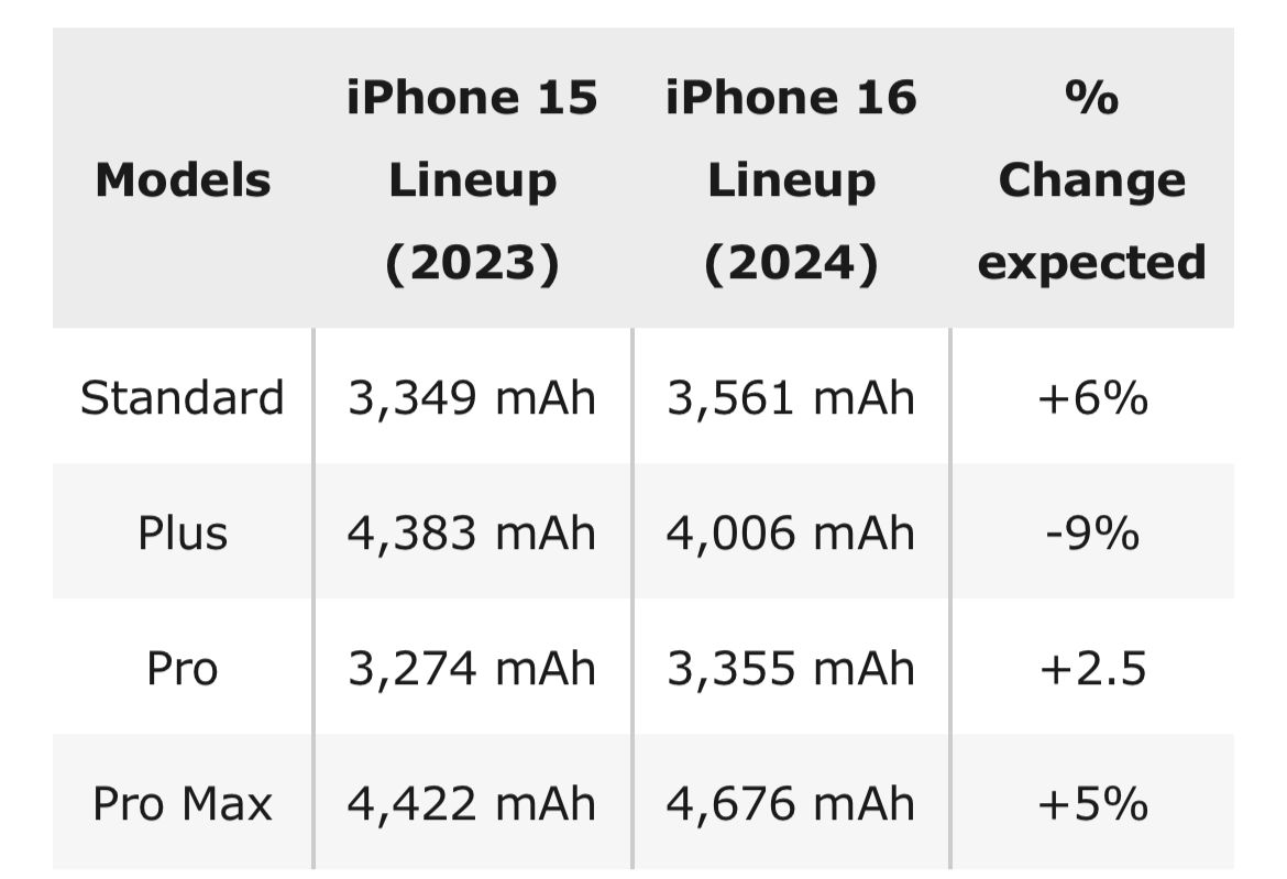 The leaked information suggests a mixed bag in terms of battery capacities across the iPhone 16 lineup.