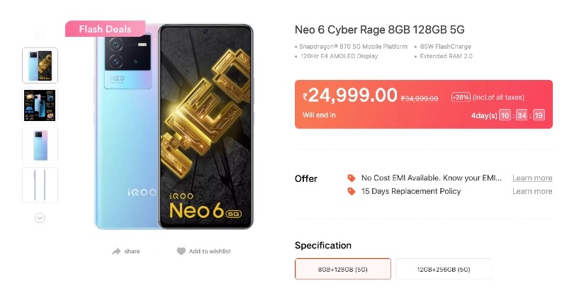 2) What is iQOO Neo 6 Price in India Reduced for Limited Duration?