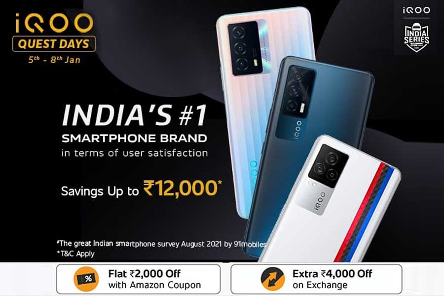 Smartphone brand iQOO today unveiled iQOO Quest Days on ecommerce platform Amazon, bringing amazing performance and innovative power. Consumers can avail attractive discounts and offers on iQOO 7 series, Z5, and Z3 smartphones during the iQOO Quest Days, including No Cost EMI, Extra Off on Exchange, Coupon Discounts, among other exciting deals. With this iQOO Quest Days, consumers will also see a permanent price drop on iQOO 7.