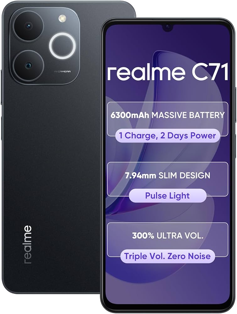 Answer: It features a 6.6-inch 90Hz HD+ IPS display, Unisoc T7100 octa-core processor, 12GB RAM (4GB+8GB), 128GB storage, 13MP rear camera, 5MP front camera, and a 5000mAh battery with 15W fast charging.