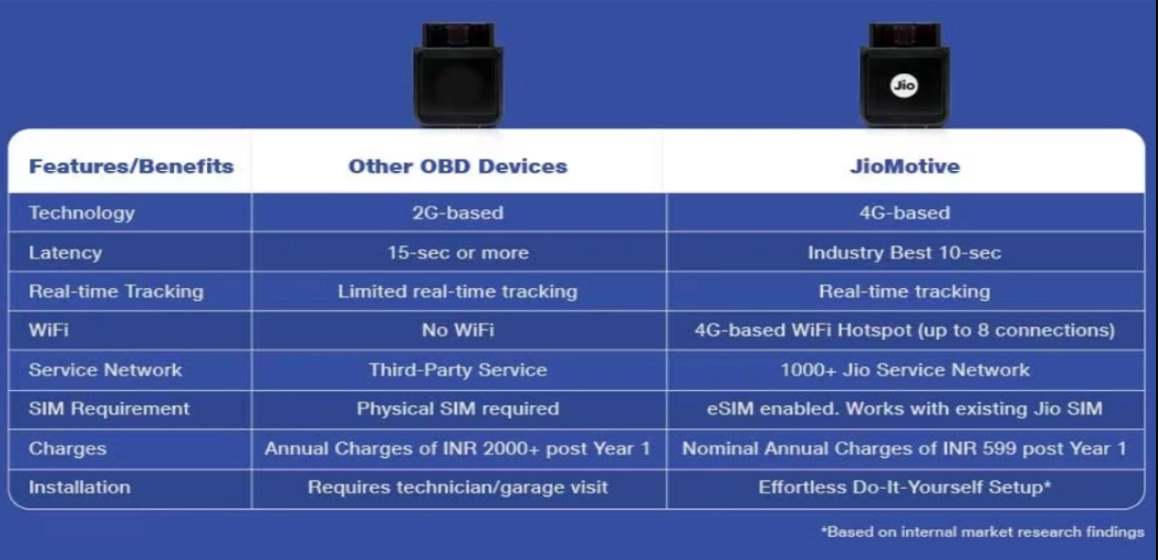 Priced competitively at Rs 4,999, the JioMotive device positions itself within reach of a broad consumer base.