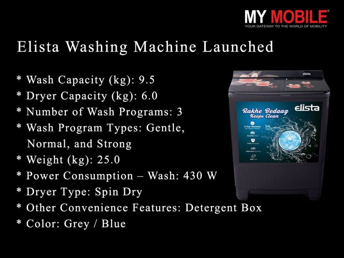 The new range of Elista 9.5kg capacity washing machine is competitively priced at ₹19,099 and comes in two premium finishes- Blue and Grey.