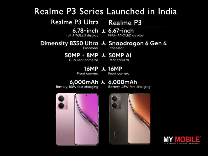 Realme launched the P3 Series in India with two models – Realme P3 Ultra 5G starting at ₹26,999 and Realme P3 5G starting at ₹16,999.