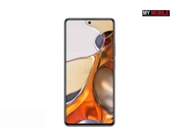 The front design image from the listing shows a flat display, resembling the Poco M7 Pro 5G. The bezels are thin on three sides, but the chin is slightly thicker. The selfie camera sits in a centrally positioned punch-hole cutout. The volume rocker and power button are placed on the right side.
