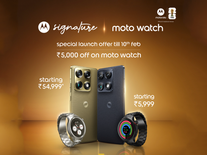 Motorola Signature Ultra-Premium Smartphone and Moto Watch in India. (Image credit – Motorola)