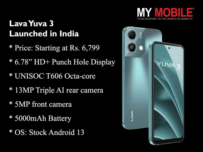 Lava International Launches Yuva 3 featuring 128GB storage, 90Hz Display and 18W Fast Charging starting Rs 6,799/-. Details?