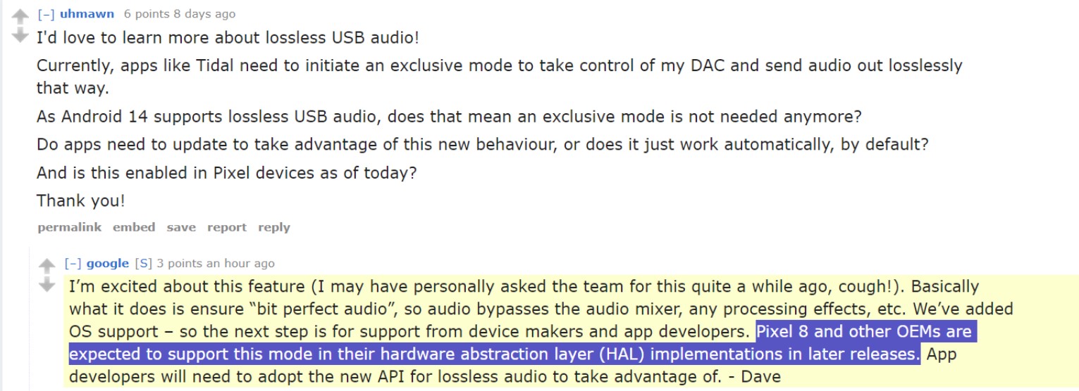 It would appear that the Android 14 update has added support for lossless audio formats over USB-wired headsets.