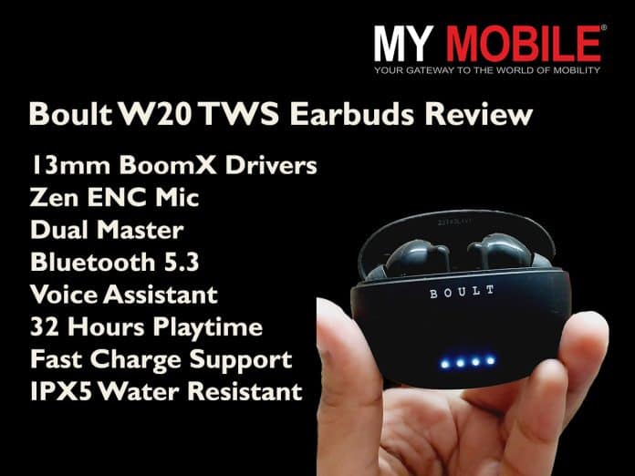 Answer. The Boult W20 TWS earbuds offer a total playtime of 32 hours on a single charge, making them ideal for all-day use.