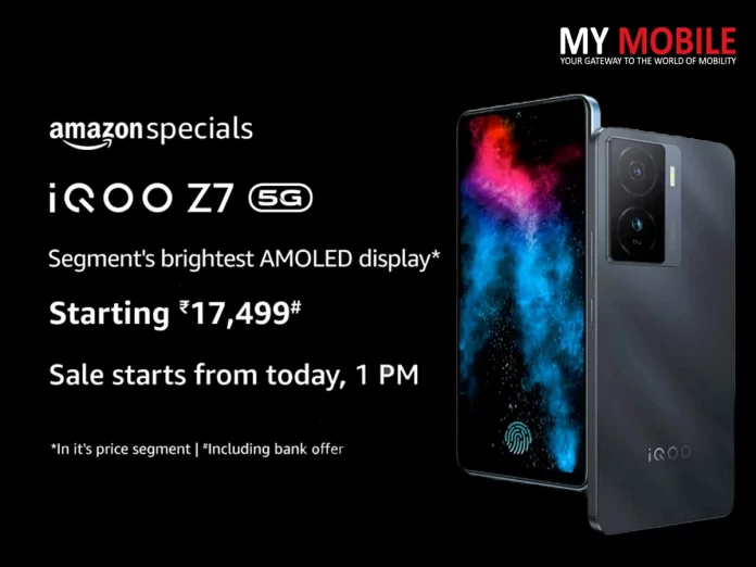 The iQOO Z7 5G comes with features like 44W fast charging, a MediaTek Dimensity 920 processor, a 90Hz refresh rate AMOLED display, and a 64MP main camera with support for OlS, and the device will go on its first sale today in the country.
