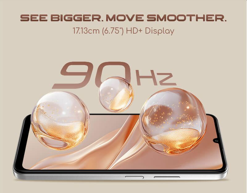 • The phone comes with a 17.13 cm (6.75”) HD+ display for smooth viewing with 120 Hz refresh rate.