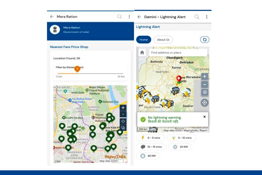 Mera Ration: Through Umang, users can identify and navigate to the nearest Fair Price Shops, as shops are visible in the form of pointers on MapmyIndia integrated map.