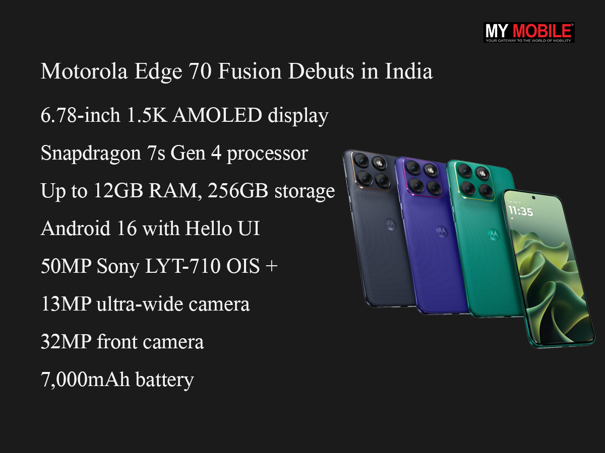 - Motorola Edge 70 Fusion debuts in India starting at ₹26,999 with an effective price of ₹24,999 after launch offers.