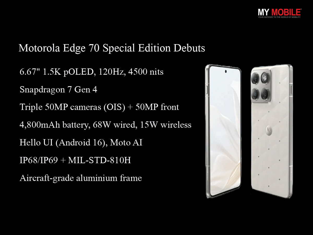 - It features identical specs to the regular Edge 70 including 6.67-inch pOLED display, Snapdragon 7 Gen 4, 12GB RAM, 512GB storage, triple 50MP cameras and 4,800mAh battery with 68W wired/15W wireless charging.