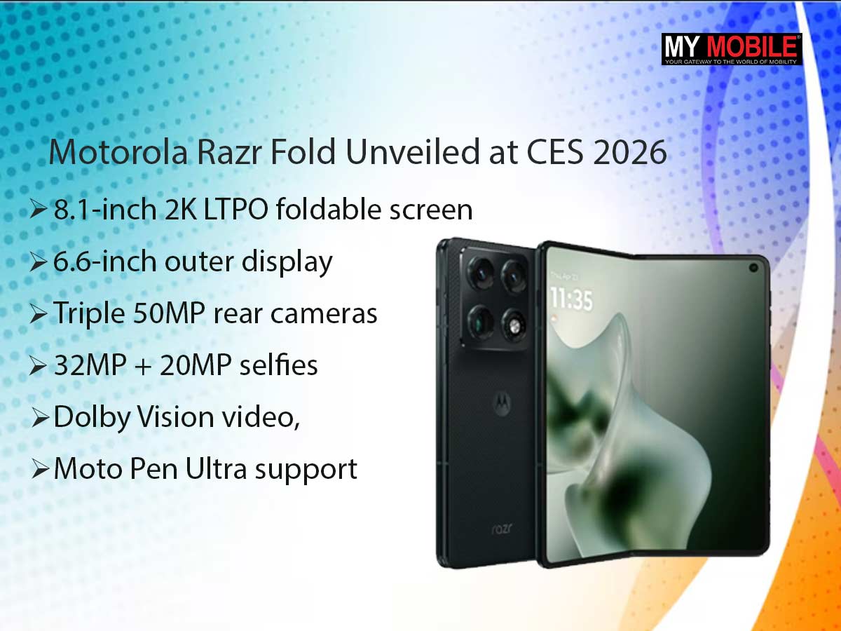 - Motorola unveiled the Razr Fold at CES 2026 with a global debut expected in the summer of 2026.