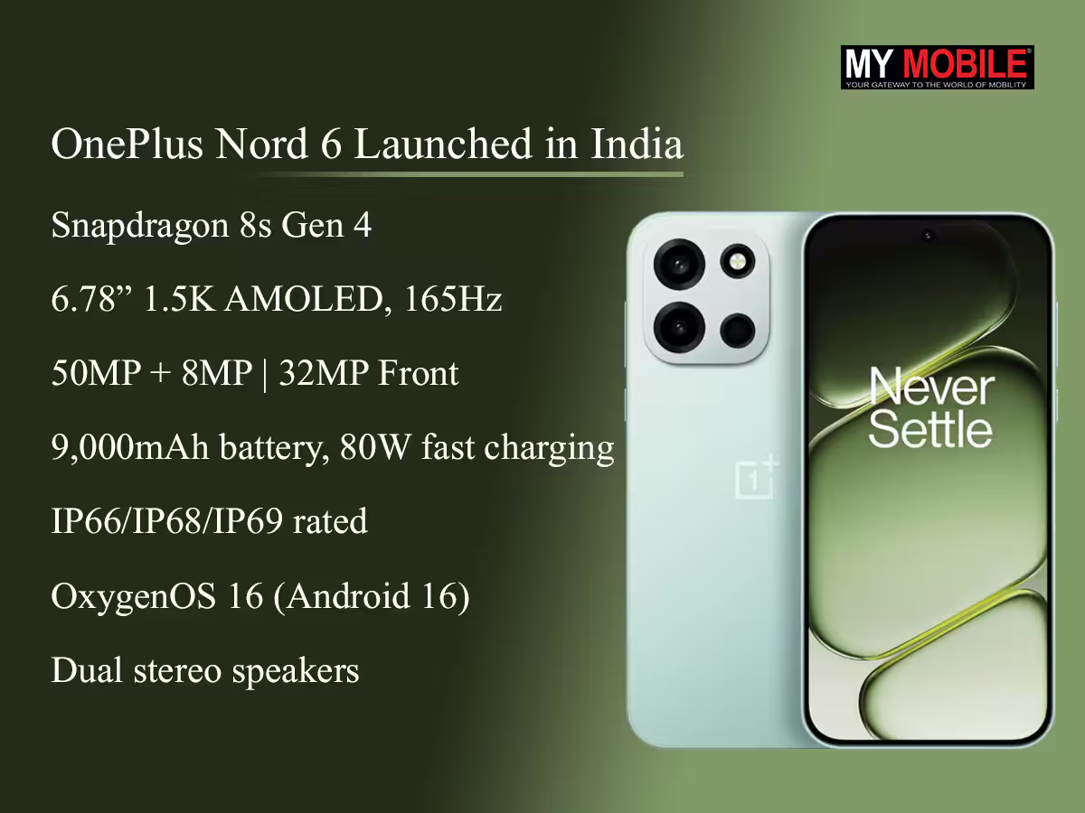 OnePlus has officially launched the OnePlus Nord 6 in India today bringing a major upgrade to its predecessor. The standout features include the latest Snapdragon chipset, a massive 9,000mAh battery, and a high refresh rate AMOLED display. It brings premium durability certifications and enhanced cooling as well. Here’s everything you need to know about the new mid-range OnePlus headliner.
