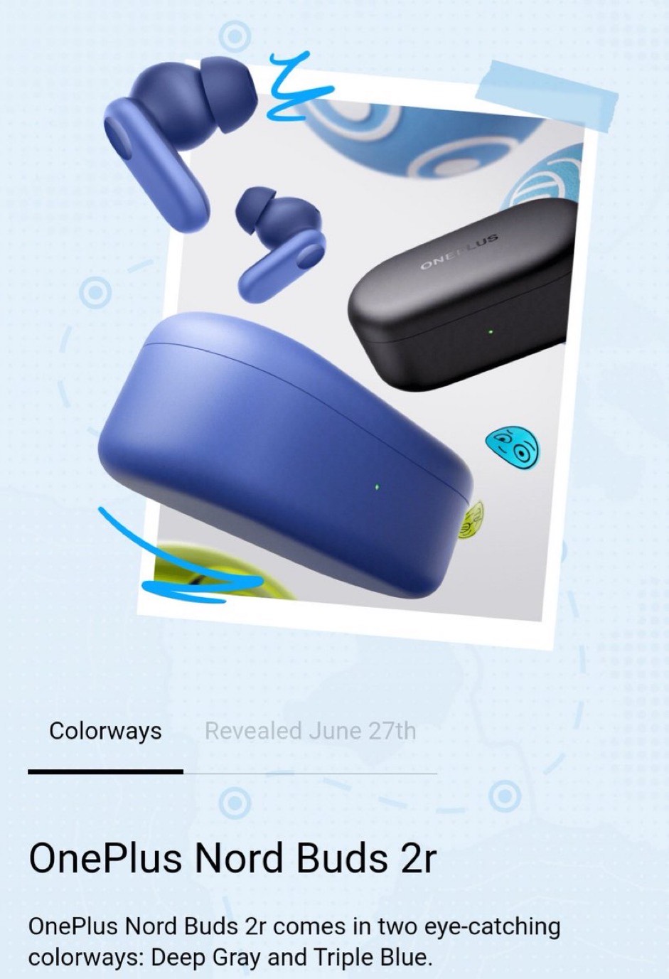 It also states that more details of the Nord Buds 2r will be announced on June 27, June 29, July 1, and July 3, respectively.