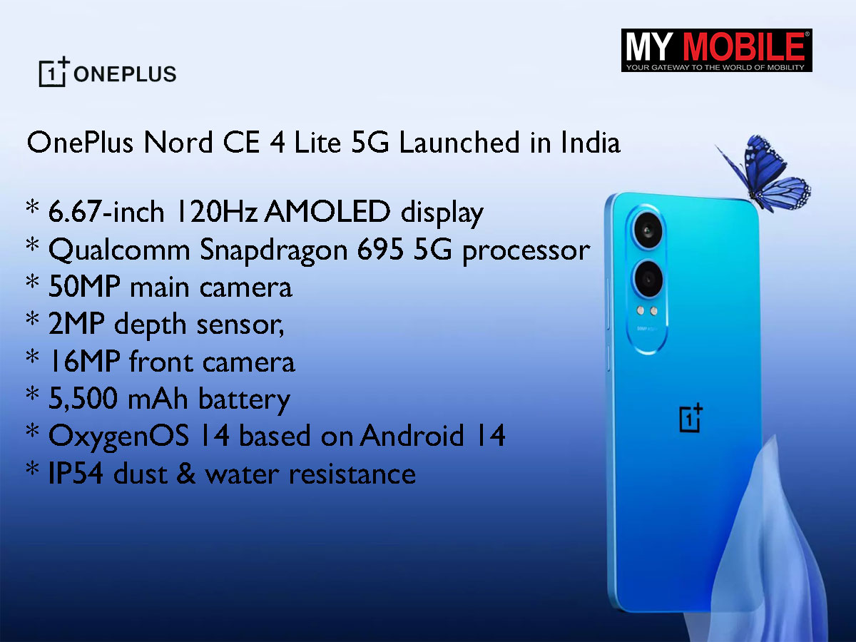 The OnePlus Nord CE 4 Lite 5G comes in two variants: 8GB + 128GB and 8GB + 256GB. Pricing will be announced closer to the sale date.