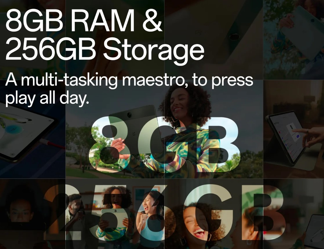 The OnePlus Pad Go is equipped with a huge 8GB RAM and upto 256GB ROM with support up to 1TB of additional external memory via microSD card.