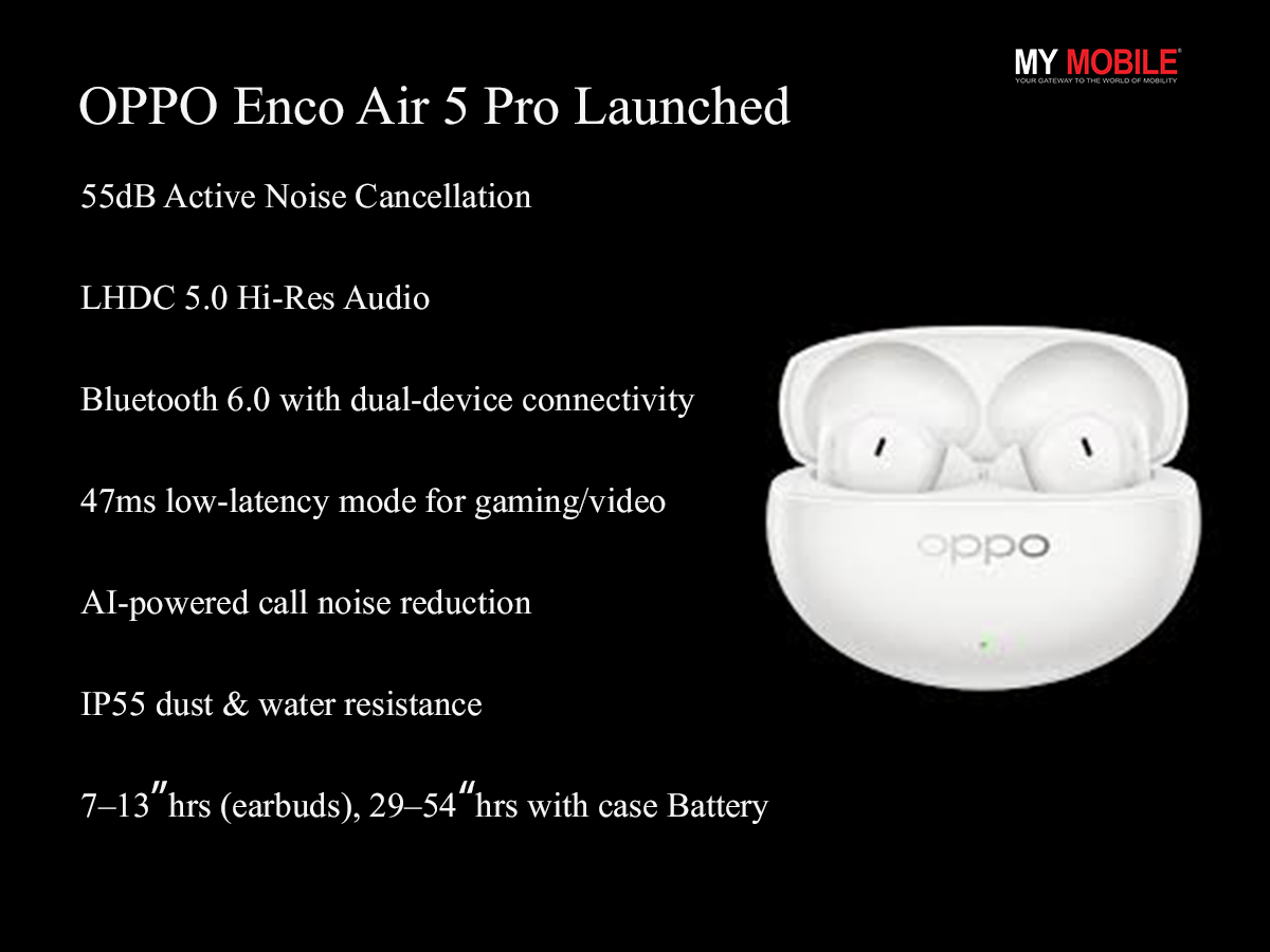 OPPO Enco Air 5 Pro Launched With 55dB ANC, LHDC 5.0 Audio and Up to 54 Hours Battery Life