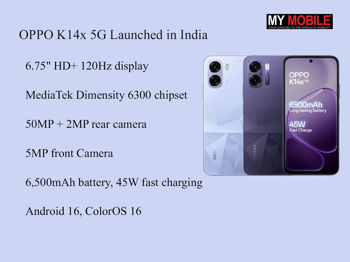 - OPPO has launched the Oppo K14x 5G in India, priced at ₹14,999 for the 4GB+128GB model.