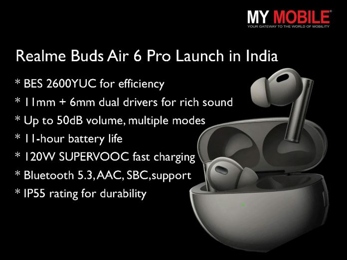 The Realme Buds Air 6 Pro debuts in India at Rs. 4,999.
