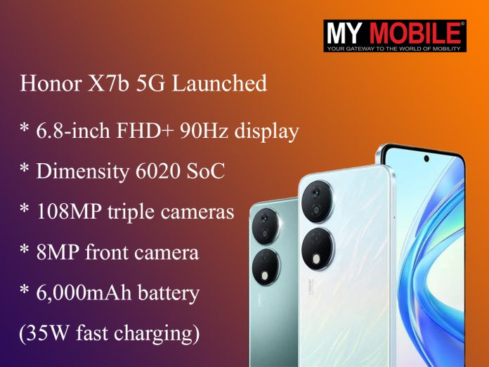 The Honor X7b 5G features a 6.8-inch Full HD+ TFT LCD screen, offering a resolution of 2,412 x 1,080 pixels. It supports a 90Hz refresh rate, providing smoother visuals and an enhanced viewing experience.