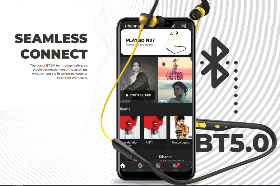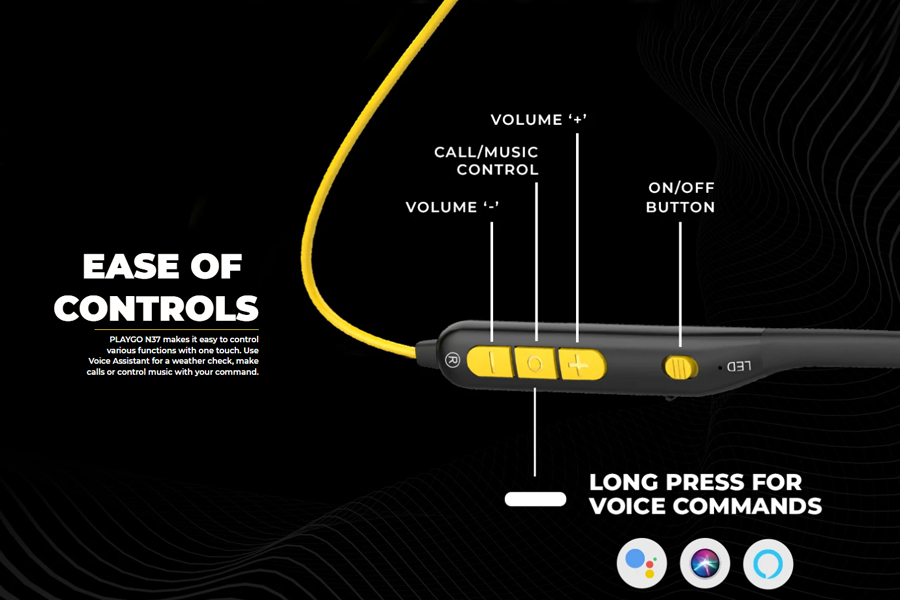The volume and the sound quality of the PlayGo N37 are quite remarkable and on par with others at the given price point. The bassheads will love it for sure. The highlight of this neckband is 10mm EBEL (Enhanced Bass; Extra Loud) drivers which contribute to its rich sound quality.
