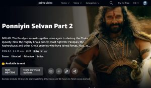 According to the latest information Ponniyin Selvan: Part 2 is available for rent on Amazon Prime Video now. One can rent the movie for Rs 399 on the platform.