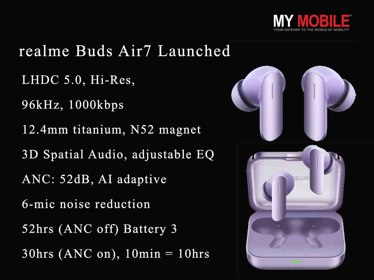 realme has expanded its audio lineup with the launch of the realme Buds Air7 in China alongside the realme Neo7 SE and Neo7x smartphones. These new earbuds come with Hi-Res Audio-certified LHDC 5.0 sound transmission offering a 96kHz sampling rate and a 1000kbps transmission rate for a high-quality listening experience.