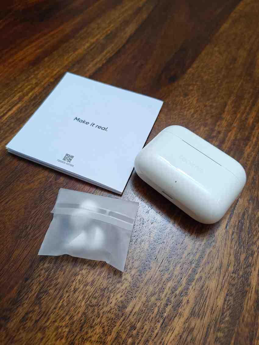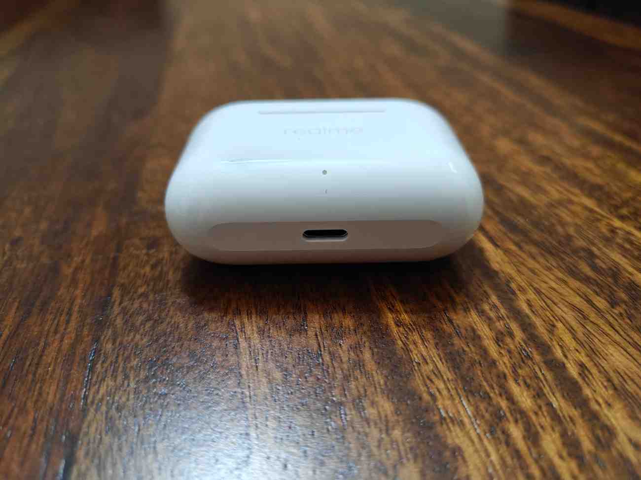 The case is compact enough to slip into your pocket without creating a bulge. There’s a small LED indicator on the front along with Realme branding. The charging port sits at the bottom.