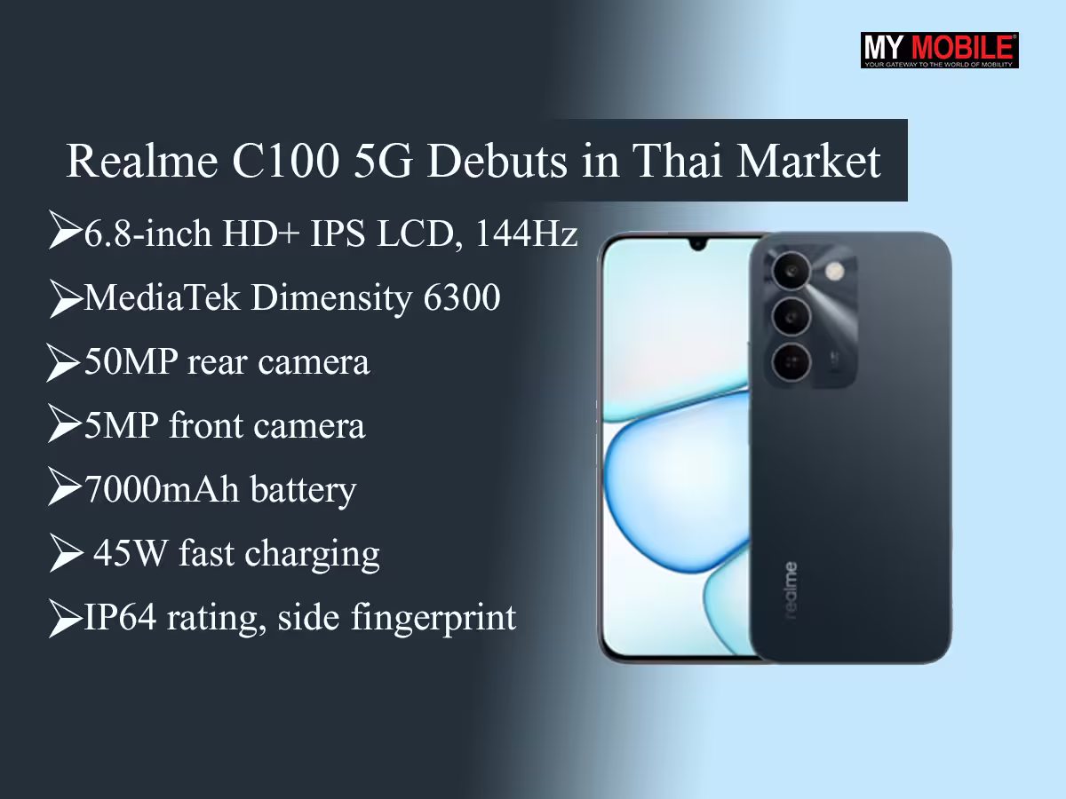 - Realme C100 5G launched in Thailand starting at THB 6,999 for 4GB+128GB memory variant.