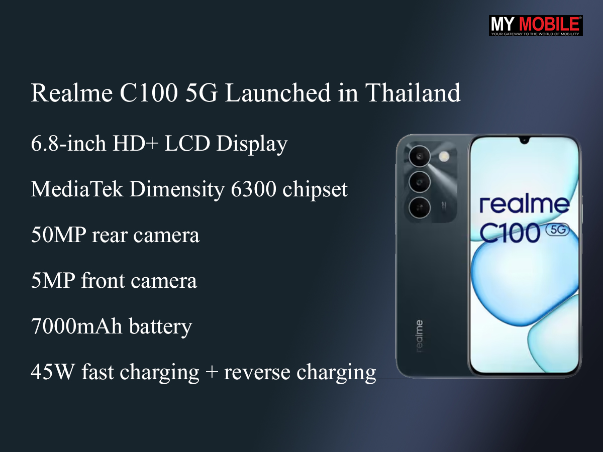 Additionally, the company has confirmed that the Realme C100i 5G smartphone will soon be launched in the Thai market.
