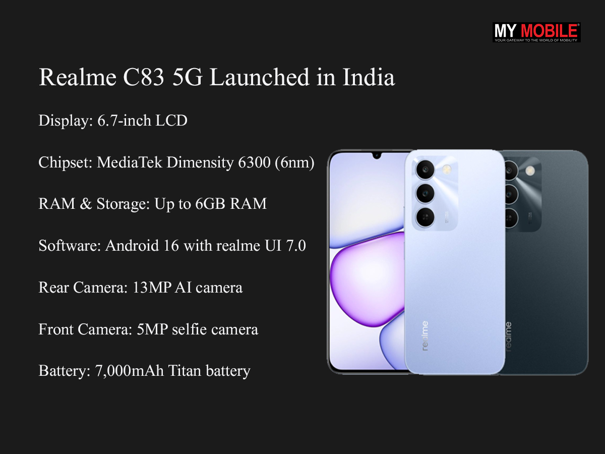 - Realme C83 5G debuts in India starting at ₹13,499.