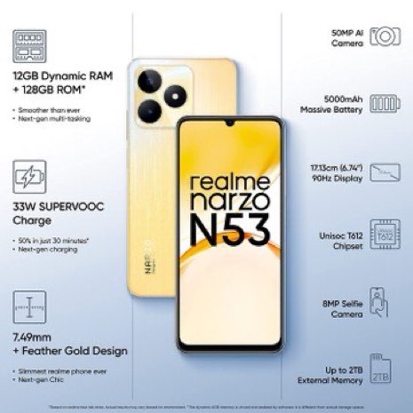 * The Narzo N53 boasts a 50MP camera, an 8MP selfie camera, and a 5,000mAh battery.