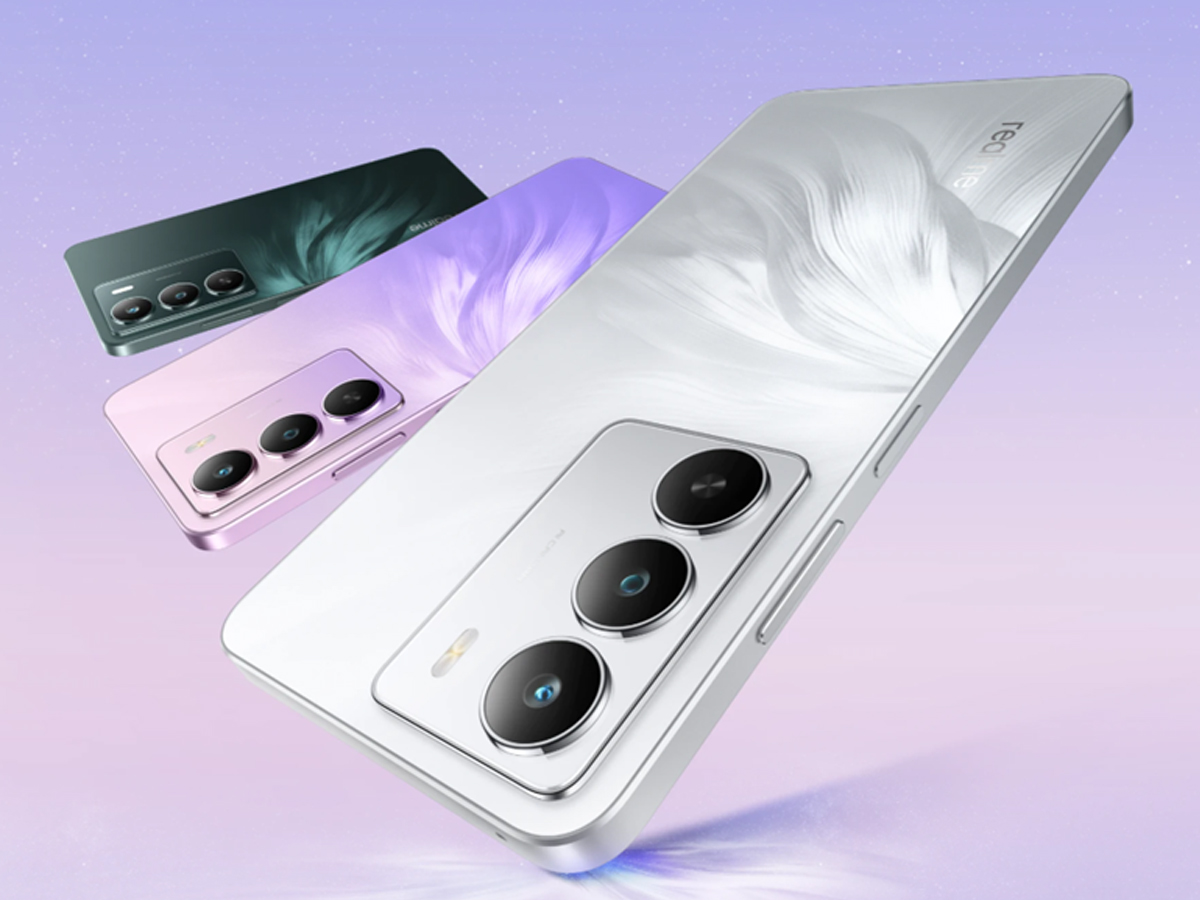 The smartphone runs on Realme UI 6.0 based on Android 15, offering a modern user experience. It also includes a side-mounted fingerprint sensor for security.