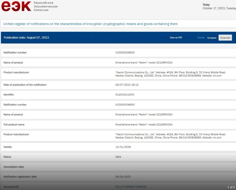 Redmi 13C: EEC Certification